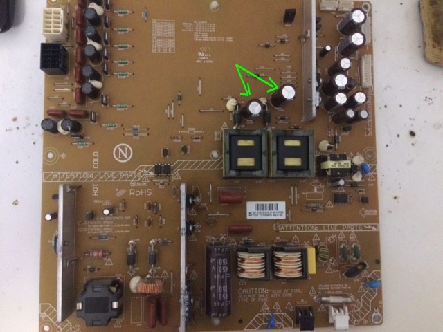Regardes s'il n'y aurait pas de condensateurs gonflés sur la carte d'alimentation.