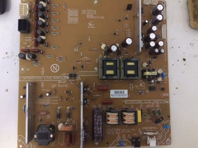 On ne sait pas si cela vient de cette carte ou de l'autre à droite. Il n'y a toujours rien qui nous le fait supposer. Une réaction du module de droite vers le module de gauche (selon la vue arrière de ton TV). Un mouvement de ce type peut faire "s'assoir" ton alimentation et mettre l'appareil en veille (sécurité). L'informatique c'est compliqué mais l'électronique aussi.