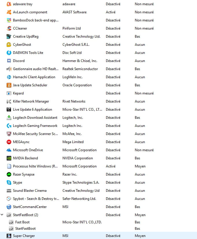 Tu peux désactivé tout les programme au redémarrage hors ton antivirus stp.