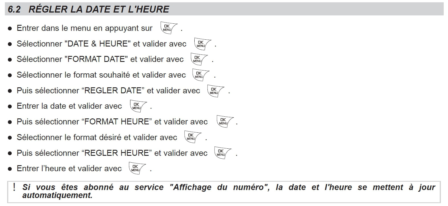 Extrait de la procédure en page 8 (12 du pdf) de la notice