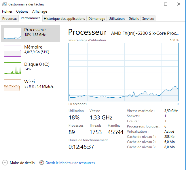 - Processeur pas utiliser à 100% du jour au lendemain