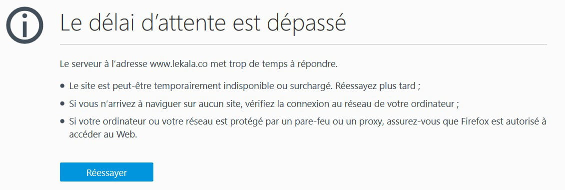 Depuis presque 3 mois je n'arrive plus à accéder à un site ( https://www.lekala.co/ ). C'est un site (russe) de patrons de couture, rien d'illégal ! Que ce soit avec Firefox, Chrome ou encore IE (que je n'utilise pas en principe) c'est pareil, voici le message que j'ai :