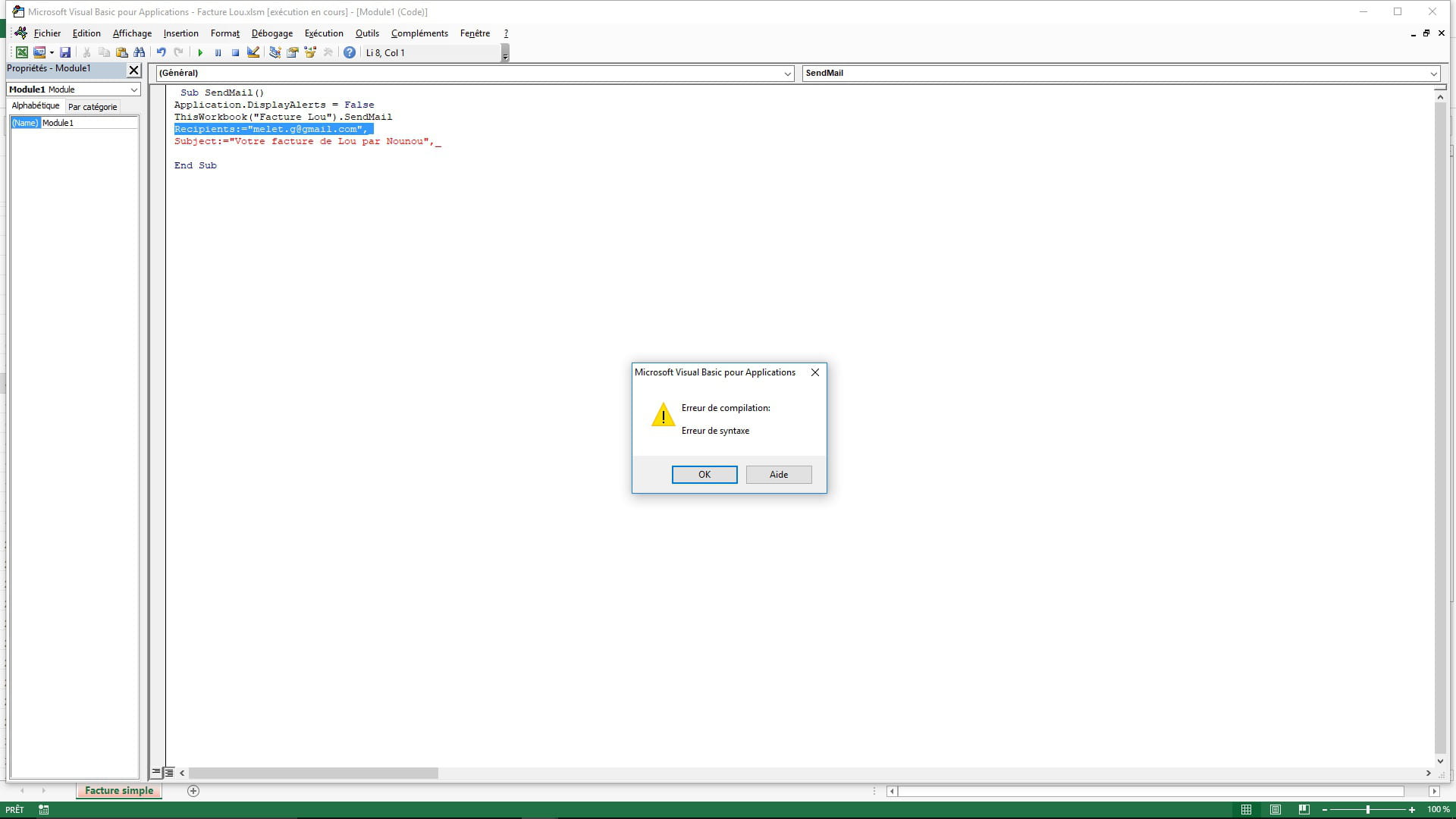 Je cherche quelqu'un qui puisse m'expliquer pourquoi je n'arrive pas à valider la macro d'envoi de fichier excel, Je suis sur XL 2010. J'ajoute un paint pour visualiser ma problématique.