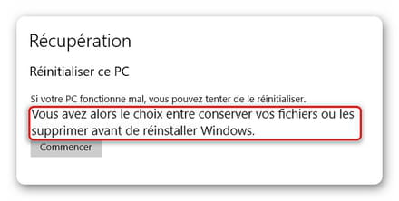 À présent, s'il est question de réinitialiser le système d'exploitation, vous avez possibilité de conserver vos documents personnels.