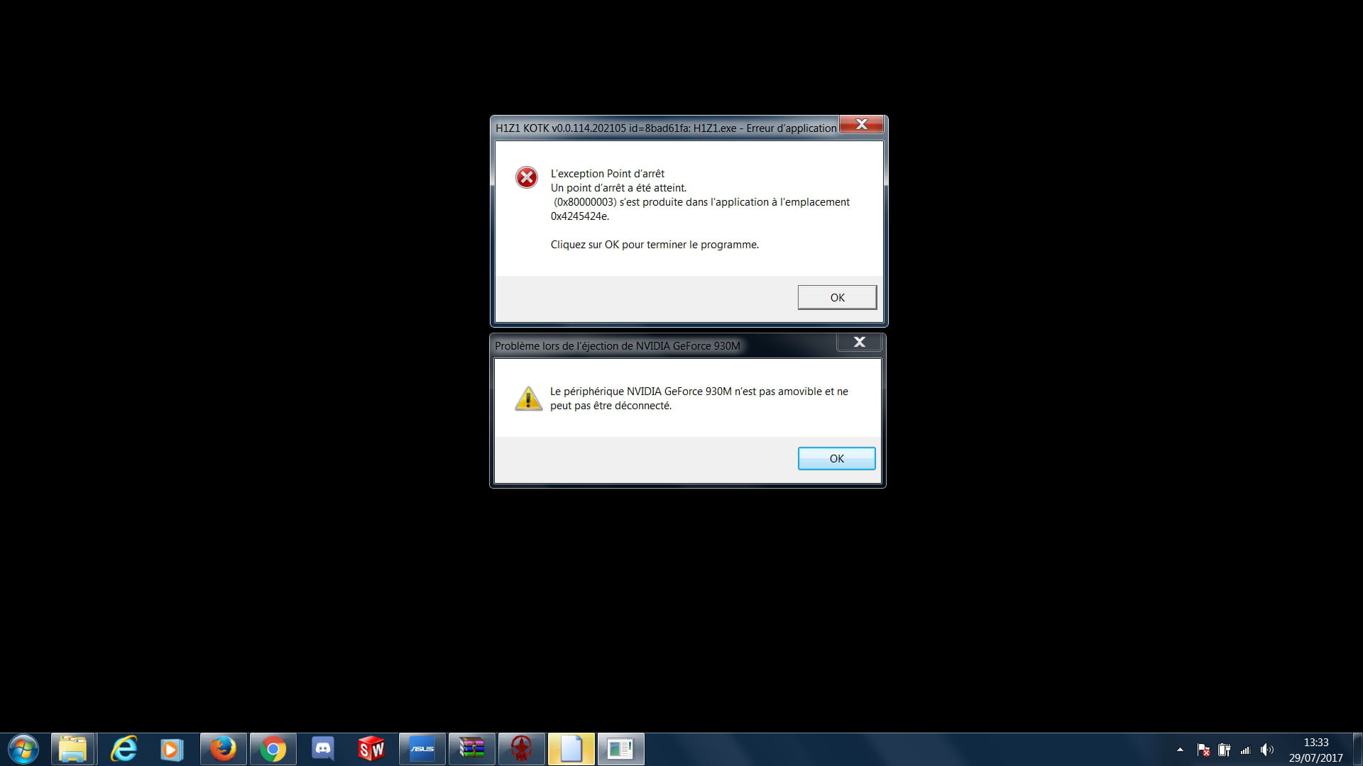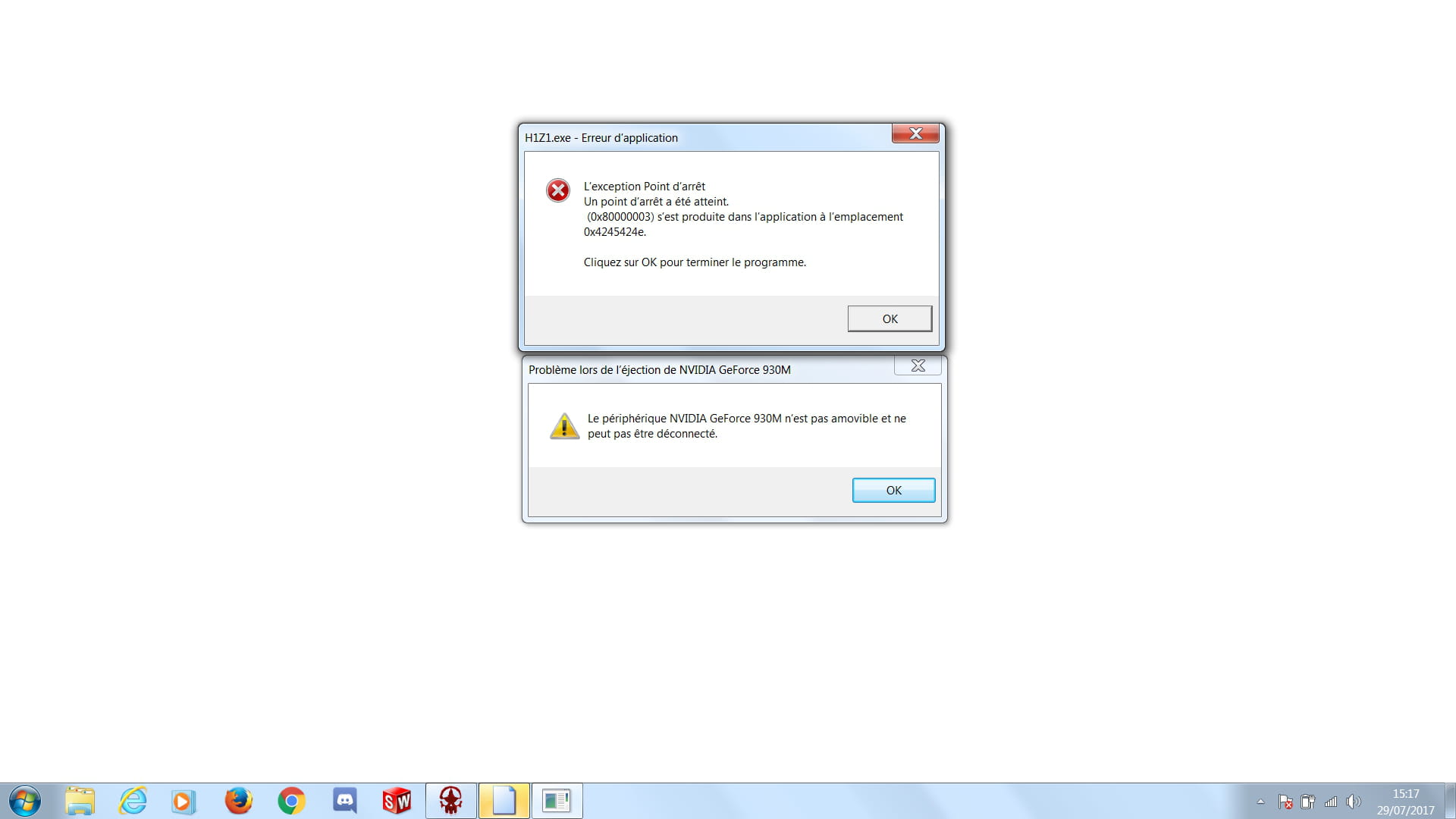Bonjour j'ai un asus sous windows 7 avec une carte nvidia 930M, Le probleme est que l'orsque je lance une application du genre Cs go, Solydworks , H1z1, ( des application qui en demande un peut). Ma carte graphique crash je ne sais pas si sa vient de mes pilotes graphique ou autre mais j ai chercher sur internet et je n'arrive pas a resoudre le probleme