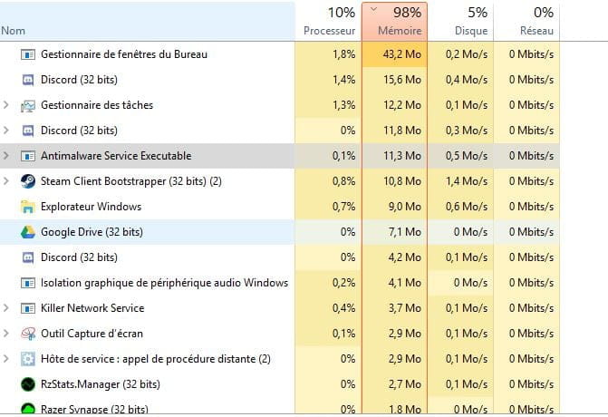 Depuis peut je sent mon PC lent et je viens de m’apercevoir que ma RAM est constamment utilisée a 100%.