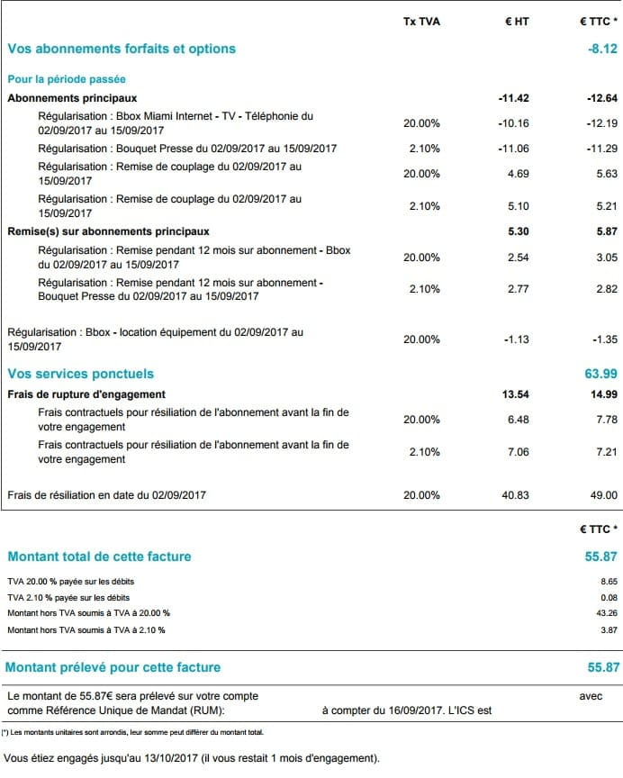 -Le total de la facture n'est pas du tout celui annoncé quand j'ai appelé pour résilier et quand je suis allé rendre mes équipements.