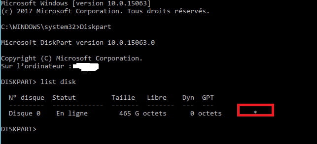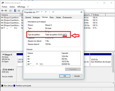 Tu peux faire un list disk sur Diskpart, ça indiquera s'il est en GPT.