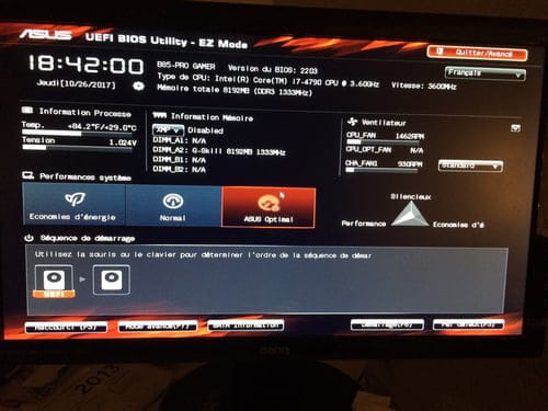 Donc j’ai remis l’autre mais au démarrage j’ai le même message que la fois passée, à savoir que le overcloaking failed. La fois passée vous m’aviez dit de remettre le truc par défaut via l’entrée bios. Je fais la même chose ?