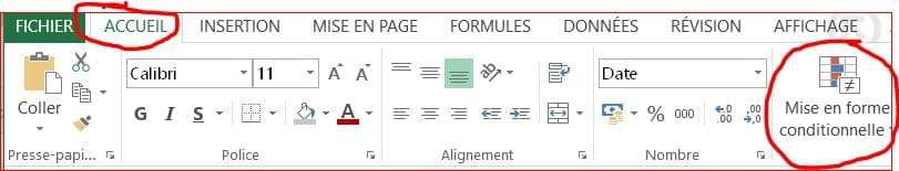 Menu Mise en Forme Conditionnelle.
