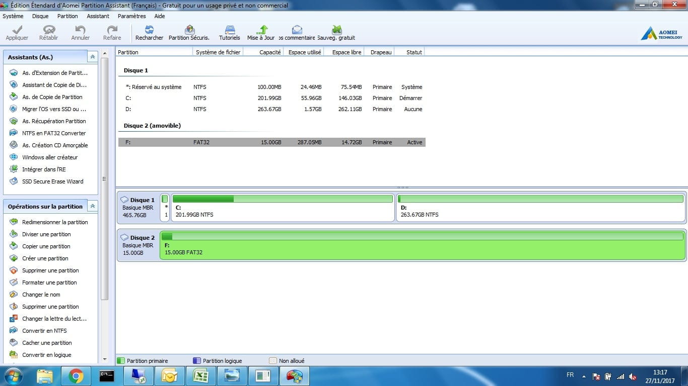 dernier tentative avec le logiciel AOMEI Partition Assistant Standard Edition 6.6