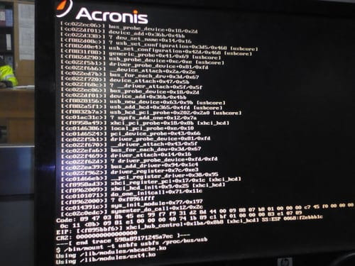 Je démarre le PC à partir du Cd, et lorsque je clic sur Acronis True Image Home, j'obtiens un écran noir avec affichage en blanc (voir image ci-joint) et le PC se bloque.