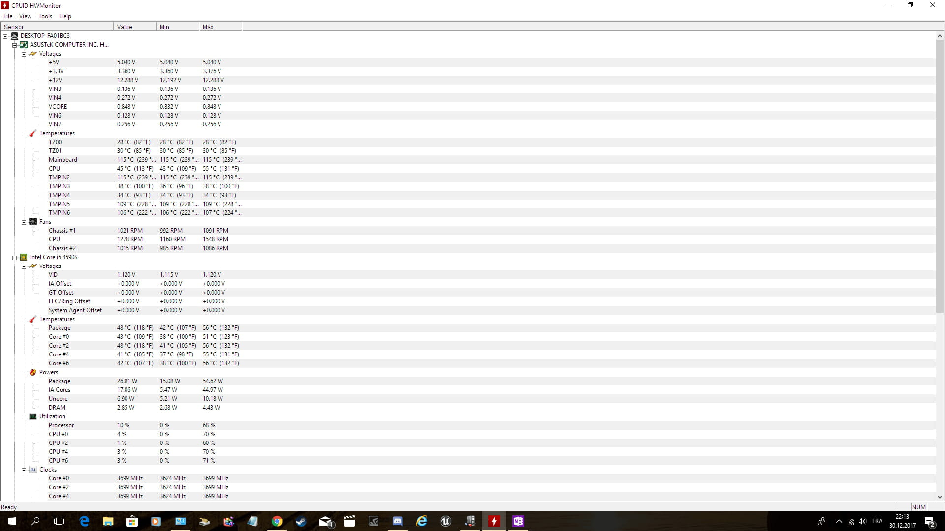 Avec Speccy, j'ai remarqué que ma carte mère avait une température de 115 degrès, avec les conseils d'un pote j'ai réinstallé windows, mais après l'avoir fait, toutes mes applis et image de profil était à nouveau là, sauf le fond d'écran. Le problème est que la température n'a pas baissé. Du coup j'ai ouvert mon ordi (éteint ) afin d'enlever la poussière s'étant accumulée).
