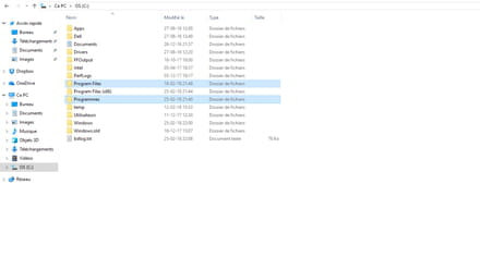 Je viens de m'apercevoir de quelque chose d'étrange... En réalité j'ai maintenant deux dossiers identiques : "Program Files" et "Programmes". Quand j'observe leurs propriétés, ils ont tous les deux été créés exactement en même temps (alors que pas du tout) sauf que les dossiers dans "Program Files", contrairement à ceux de "Programmes", sont inaccessibles. Quelqu'un pourrait me dire si je peux supprimer "Program Files" sans danger ? Merci.
