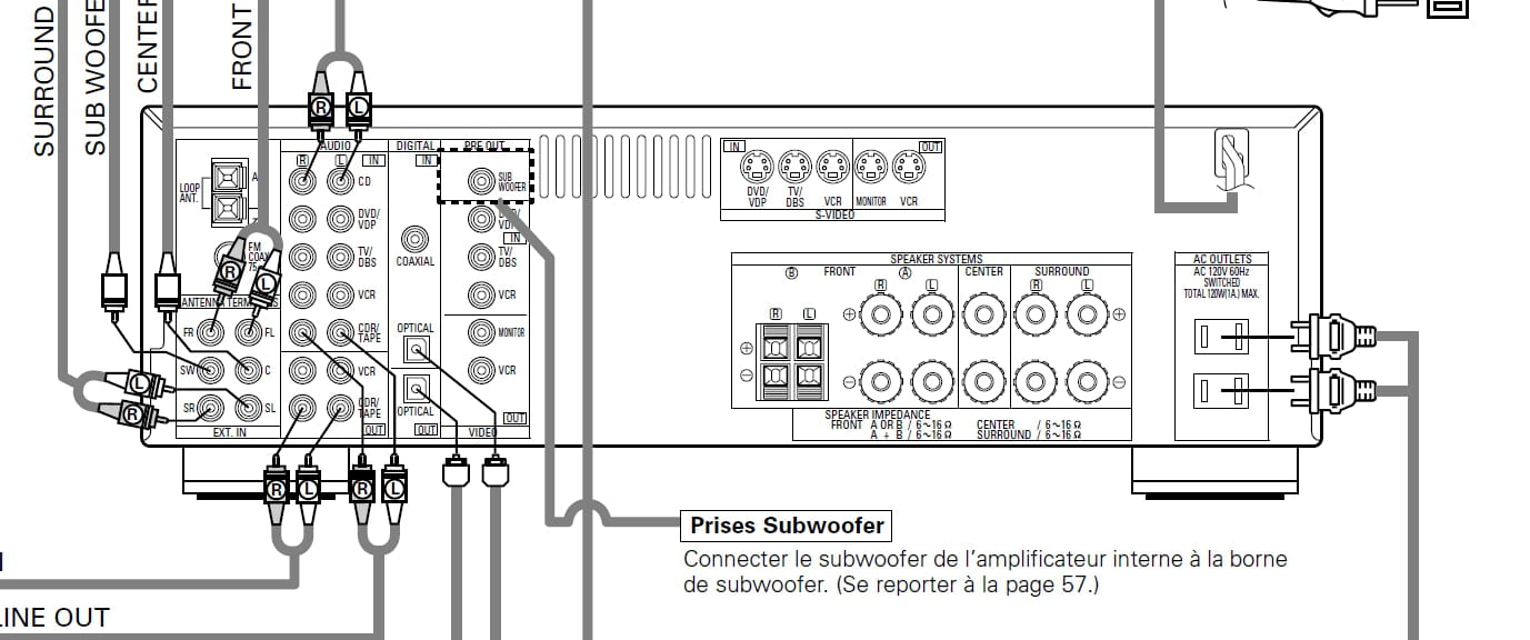 Et il faut que ce soit des liaisons entre le téléviseur et l'ampli (bien suivre les câbles)