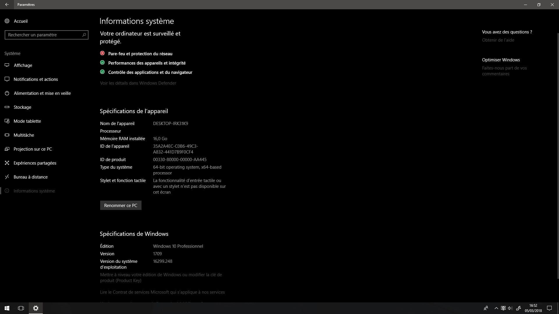 Aujourd'hui après réception de ma nouvelle alimentation je me suis donc empressé d'aller la monter tout,fonctionne nickel rien d'alarmant, ensuite je décide de stopper mon ordi pour aller faire 1 ou 2 courses et au moment de le rallumer, plus de connexion Ethernet sachant que je suis relié avec un CPL TP LINK je décide donc d'aller dans dans les paramètres internet W10 et la bizzare j'ai ceci (voir photo 1)
