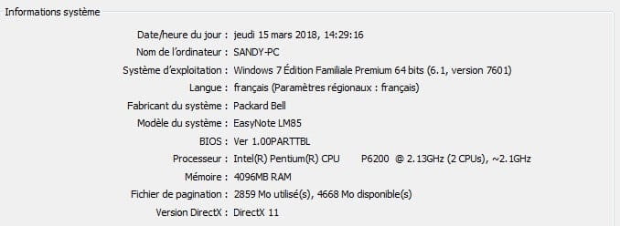 voici les caractéristiques de mon pc actuel: