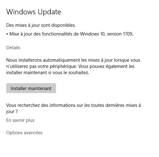 Mon ordinateur est maintenant comme neuf depuis quelques semaines, et windows update me proposer cette mise à jour(version 1709).