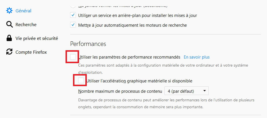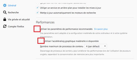 Clique ou décoche la case --> Utiliser les paramètres de performances recommandés