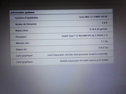 config:nvidia 630m,intel i7-3610qm 2.3ghz, ram 3.7 go,disque 479.6 go