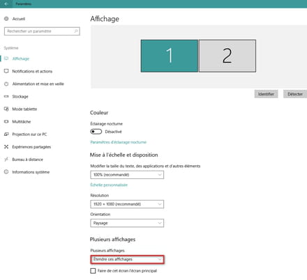 Ensuite tu vas dans Paramètres/Affichage et tu sélectionnes Étendre ces affichages.