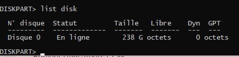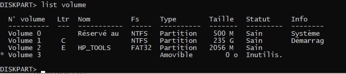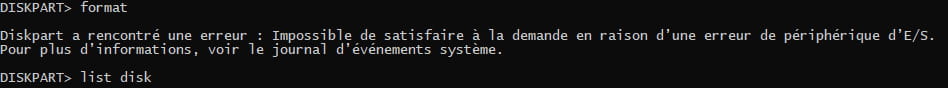 quand j'essaye de creer une partition dans le volume je recoit erreur et quand je met format je recoit:
