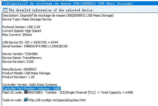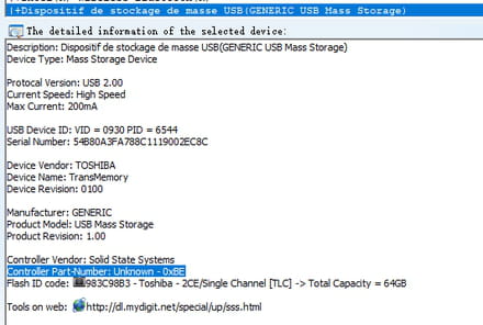 Usb Toshiba Transmemory U202 64 gb Non reconnu