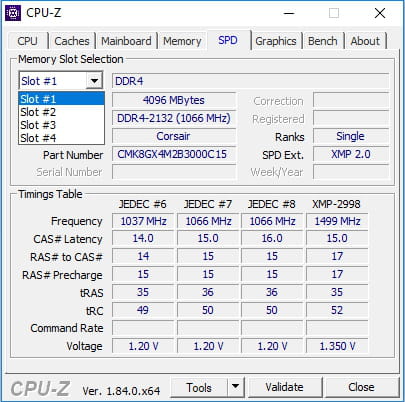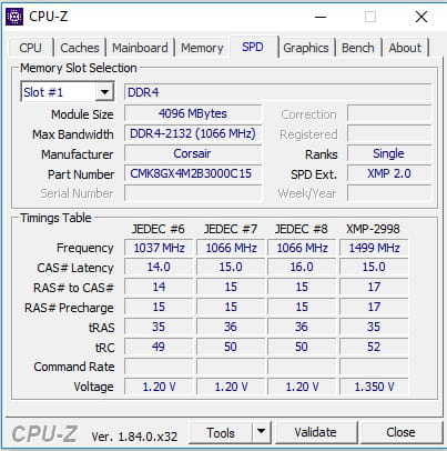 tu as actuellement des Corsair DDR4 CMK8GX4M2B3000C15 qui tournent à 3GHz (voir CPU-Z SPD)