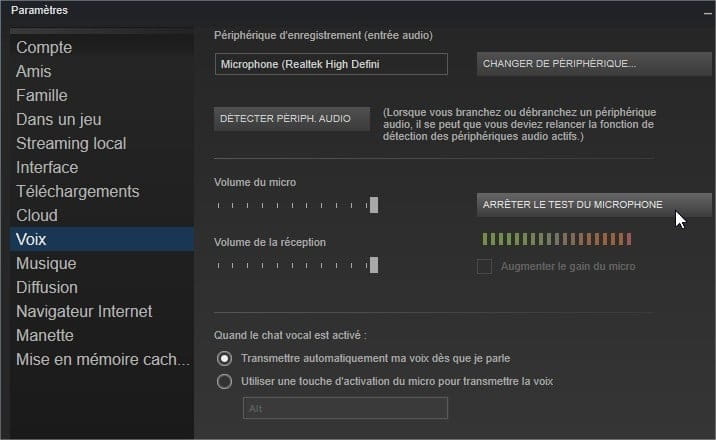 ===> j'ai bien un microphone détecté avec une coche verte.