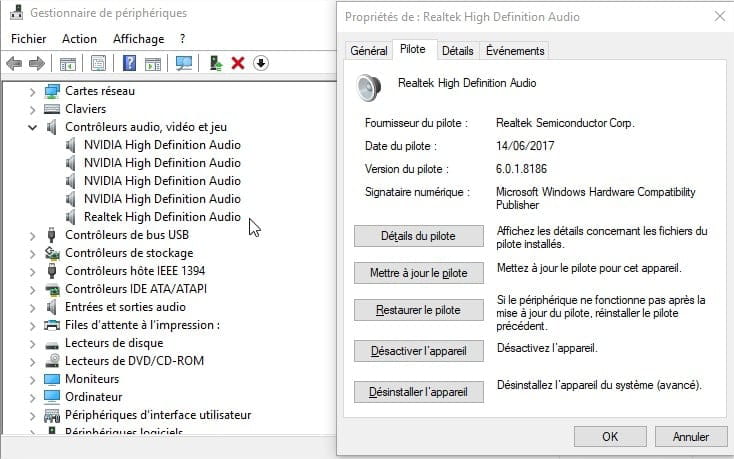 (aussi testé avec les drivers Microsoft "Périphérique High Définition Audio")