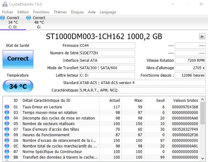 Je voudrai donc savoir comment faire pour régler ce problème de freeze lors de l'arrêt car il me pose vraiment problème. J'ai aussi entendu dire que c'était préférable de joindre un screenshot d'un crystaldisk donc voici mais je ne sais absolument pas ce qu'il signifie