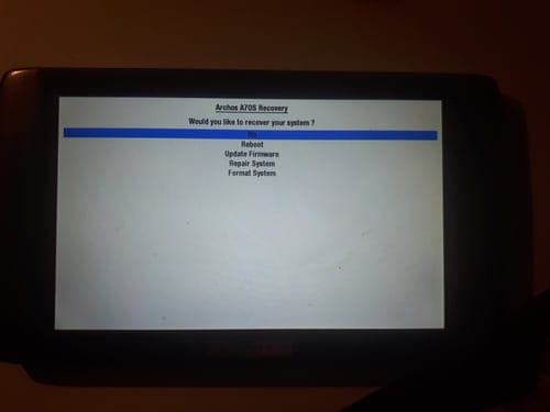 J'ai un problème avec mon Archos 70 Oit, je n'ai plus de système d'exploitation quand je l'allume cela s'affiche automatiquement cela.
