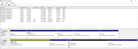 Bonjour, mon pc était en dualboot avec ubuntu mais je ne m'en sert plus donc j'ai voulu redonner l'espace(+- 360go) que j'avais donné à ma partiton ubuntu pour me la redonner sur mon disque de D: sous windows. voici le problème lorsque je veux étendre le volume du disk D: jai le message d'érreur suivant : l'espace disponible est inssufisant. Je crois que cela est dû au fait qu'il y a déja 4 partition de créé. Donc je dois en supprimer une mais je ne sais pas laquelle et la seule option que j'ai quand j'appuie sur click droit cest de demander de l'aide donc en résumé voici mes problèmes
