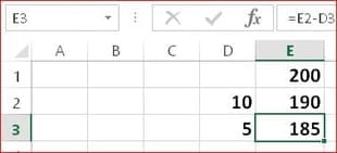 C'est en E1 qu'il faut inscrire le montant en inventaire, soit 200. En D2 tu saisis les 10 articles utilisés. En E2 tu as le solde =E1-D2. En D3 tu saisis les 5 articles suivants. En E3 nouveau solde =E2-D3. Et tu recopies E3 vers le bas.
