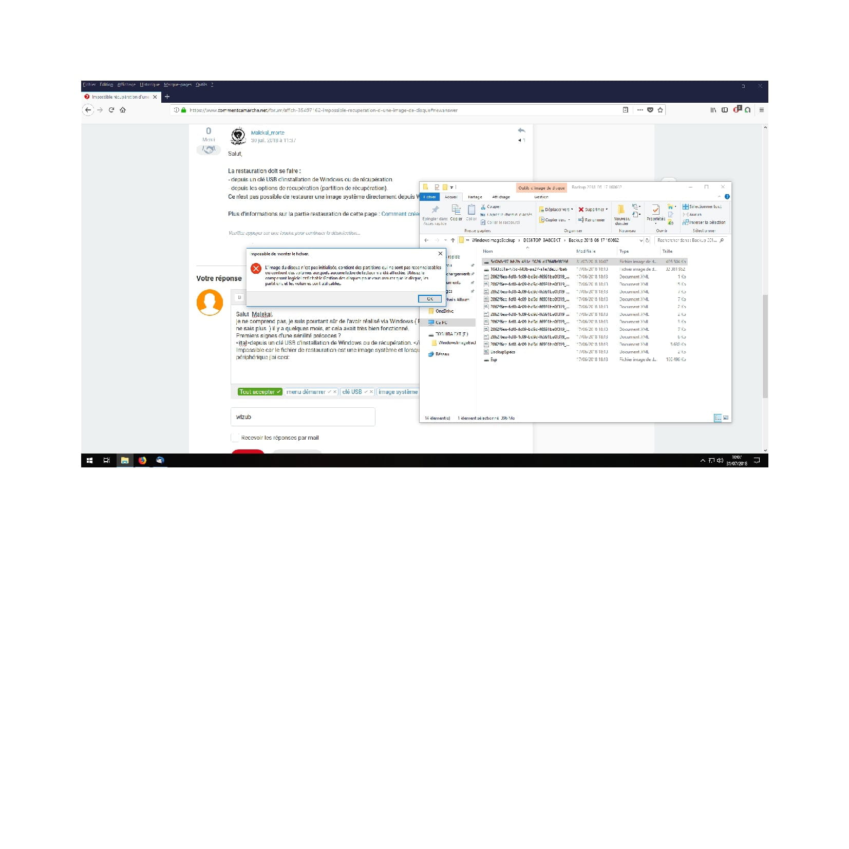 Impossible récupération d'une image de disque