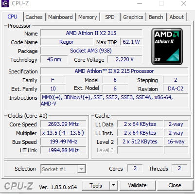 le AMD Athlon II X2 215 2.7GHz a un BUS de 533 MHz