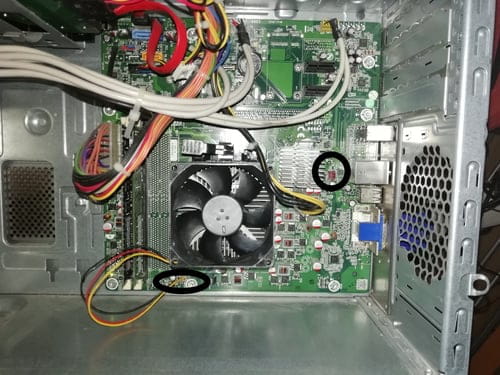 Je pense que ce que on a vue est bon je pose quand même une photo de la carte mère j’ai entouré en noir les connecteurs pour ventilateur