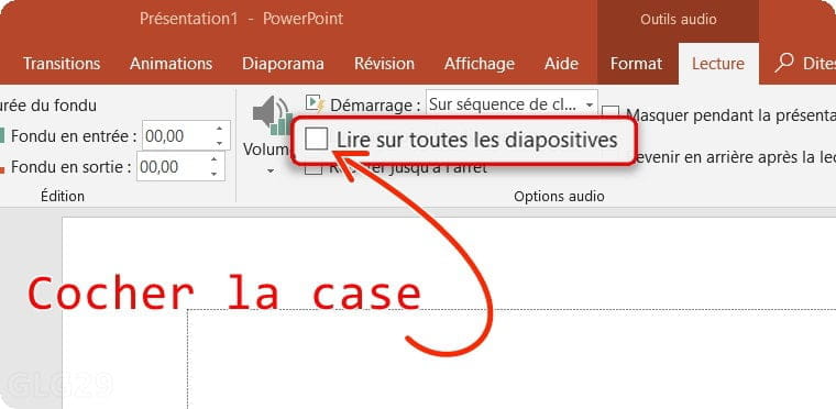 bonjour je veux faire un pps avec musique je vais dans insertion sons je choisis un morceau et je le mets sur la 1ere diapo ça fonctionne mais la musique reste entièrement sur la 1ere diapo comment faire pour qu'elle défile jusqu'au bout ? Merci