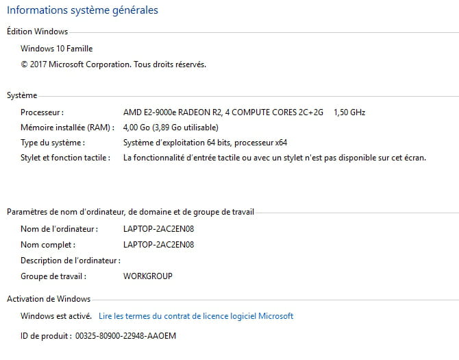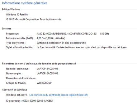 Confirmation avec cette capture, tu disposes d'un processeur AMD E2... Ils sont très très peu performant. Presque une honte niveau performance, même, ça devrait pas exister. Même les Celeron et Pentium premier prix sont plus performant chez Intel...