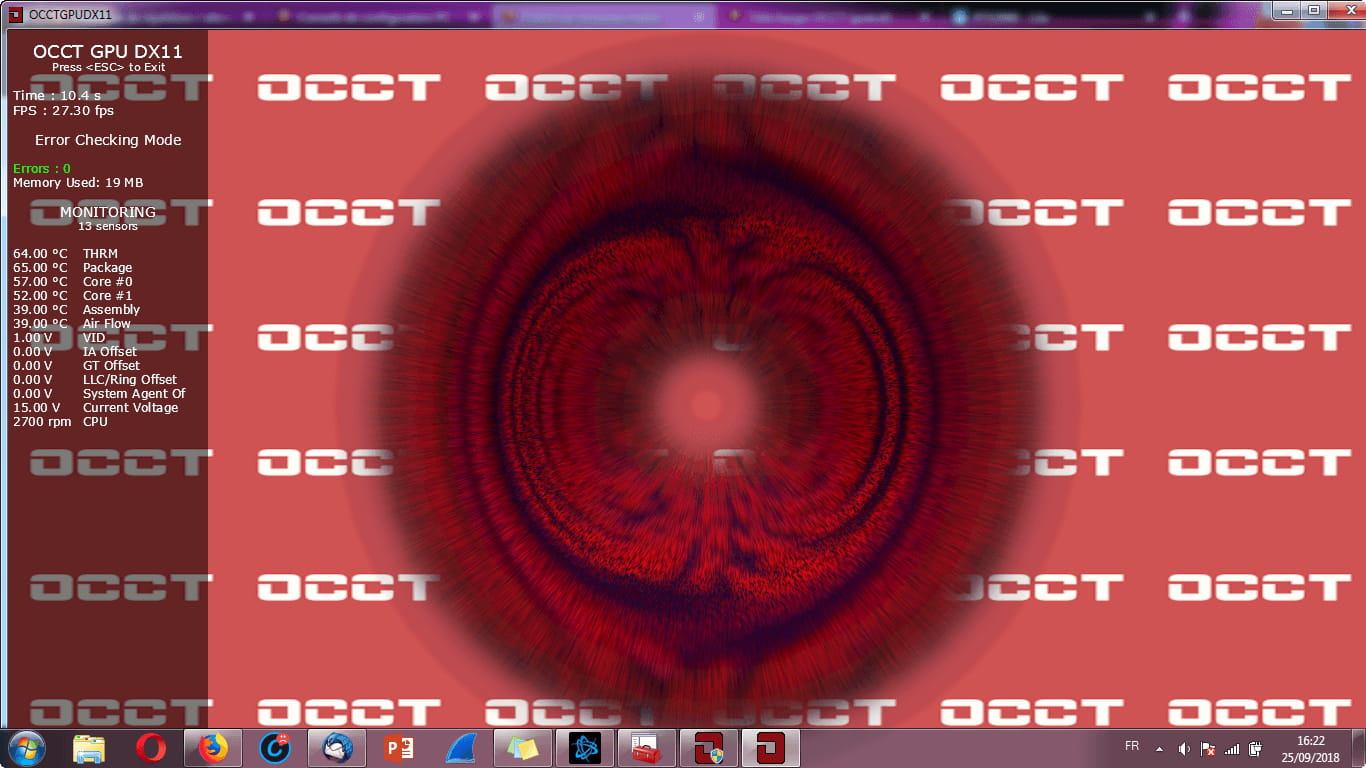 tu peux essayer déjà de tester avec OCCT, tu vas dans l'onglet GPU et tu lance le test, laisse le tourner un moment le temps de voir s'il y a chute de fps, en attendant ne quitte pas la fenêtre ça fausserait les résultats, ensuite quand tu quittera le test il va ouvrir un dossier avec des captures et poste les