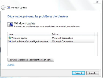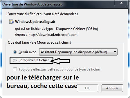 2) télécharge cet outil de résolution des problèmes pour WU sur ton bureau clique ici