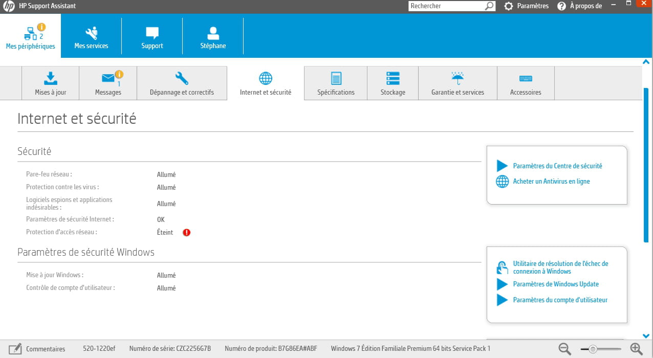 Je n'ai plus de connexion ethernet sur mon hp 520-1220ef Windows 7 premium.