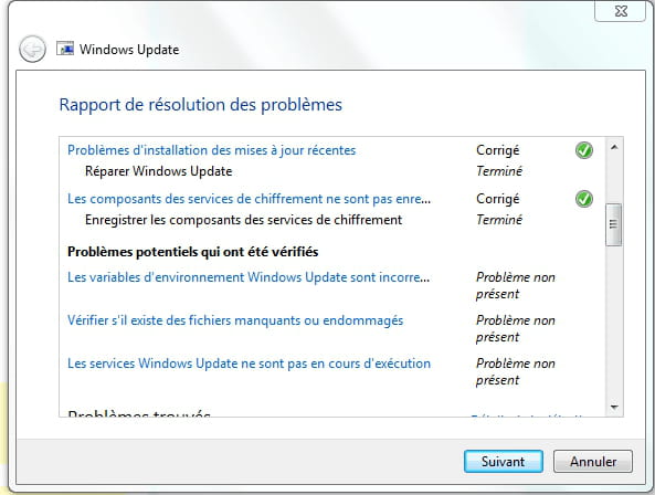 PS: tu as redémarré le pc après avoir exécuté WU Diagcab?