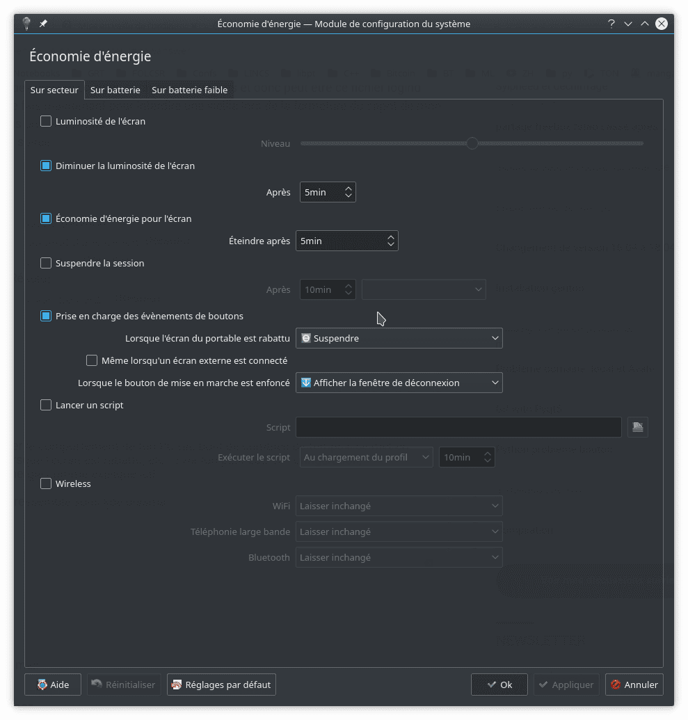 J'avais modifié le fichier logind.conf pour éviter qu'il n'entre en veille, et ça fonctionnait super bien. Cependant, il se remet à nouveau en veille depuis que je l'ai débranché tantôt, hors les paramètres du fichier n'ont pas changé, le LidSwitch est toujours sur "ignore"! Du coup, comment je peux faire ?