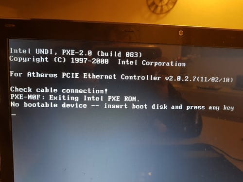 Le PC ne démarre plus sur le disque dur. Aller dans le Bios et mettre le disque dur en première position de démarrage, sinon, remettre les paramètres par défaut du Bios dans la rubrique Exit.