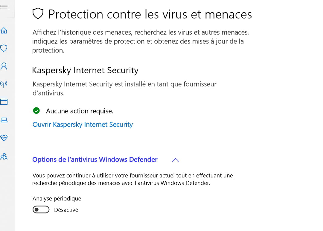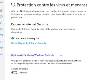 sur W10 si tu installes 1 antivirus, Windows Defender ce désactive automatiquement (pour éviter les conflits entre 2 AV)