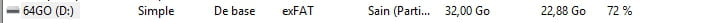 Le fait que la clé de 64Go soit reconnue avec une partition de 64Go mais indiqué en 32... c'est étrange.