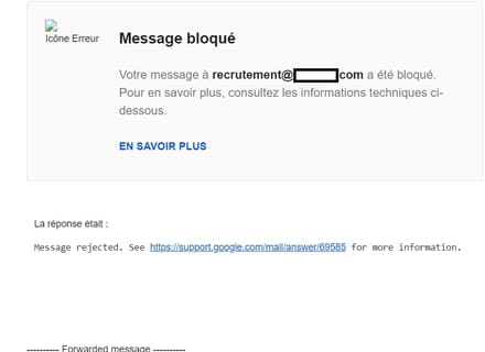 Les mails ne s’envoient pas « Votre message à *** a été bloqué »