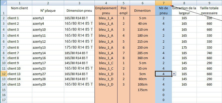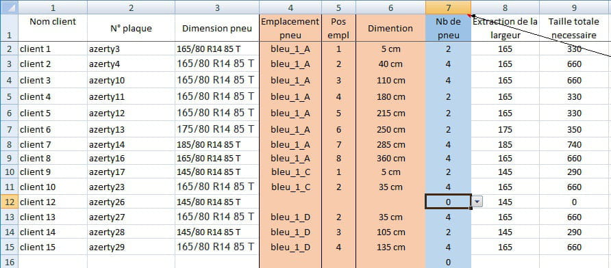 le client 1 ne veux plus que l on garde ses pneus on indique a excel que l on ne veux plus de cet emplacement