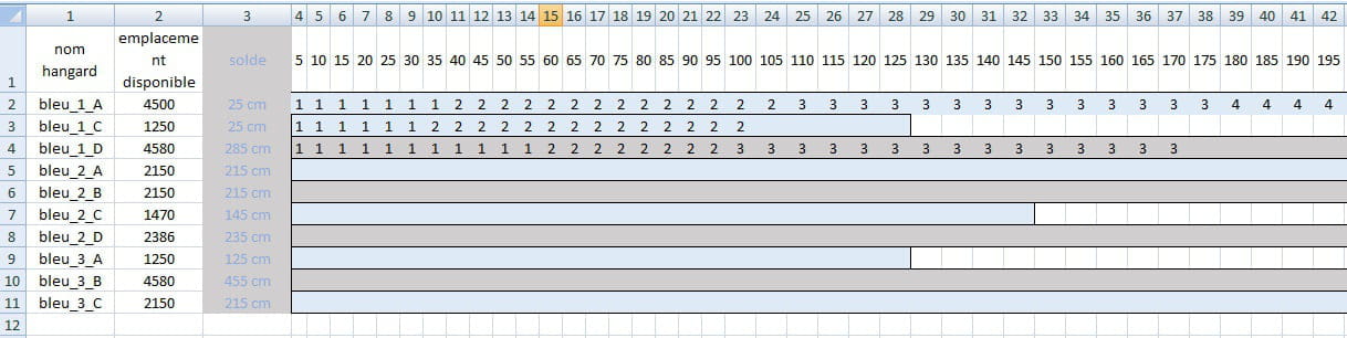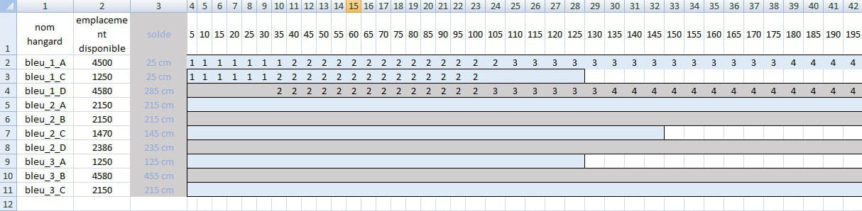 puis l idée serait qu excel recherche de façon automatique le premier hangar disponible qui peux lui offrir l emplacement recherche et indique dans la colonne C le nom de l hangar